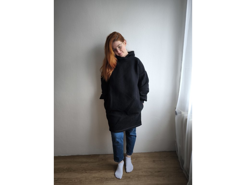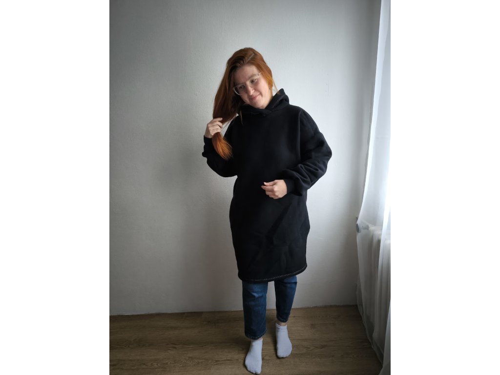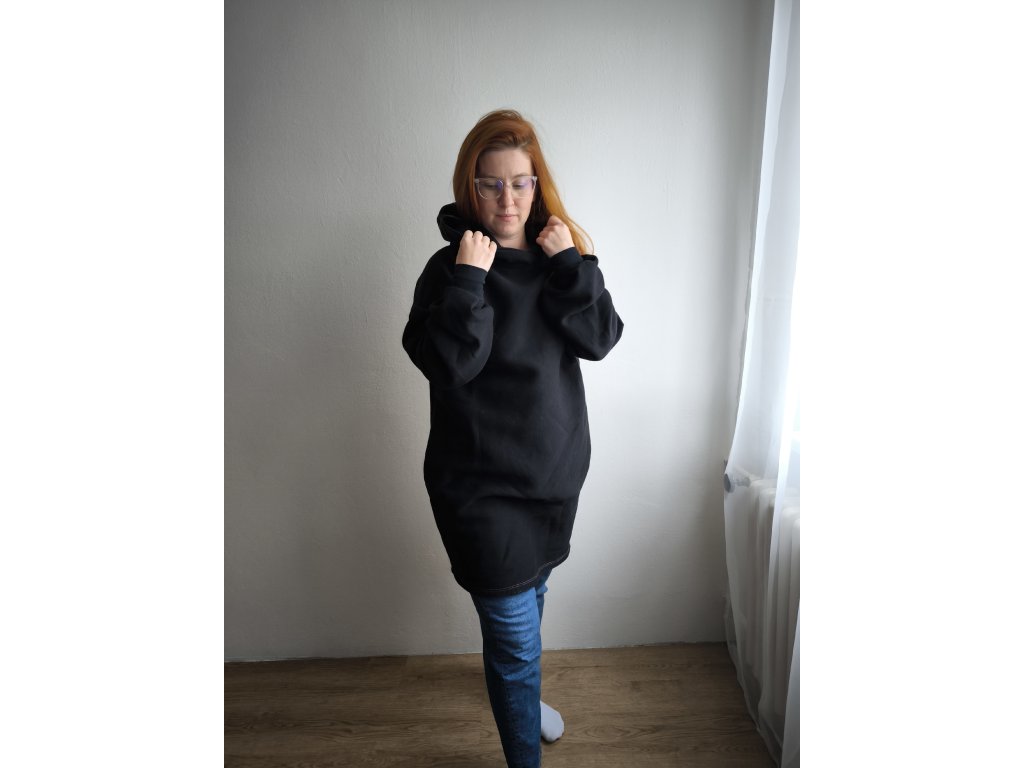Pro dokonalost této mikiny je možné na přání ušít i skryté kapsy na bocích u varianty mikiny ke kolenům.